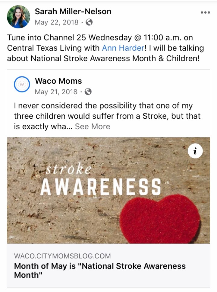 Sarah Shares the FAST Signs to raise awareness of the signs of a Stroke in Children.
